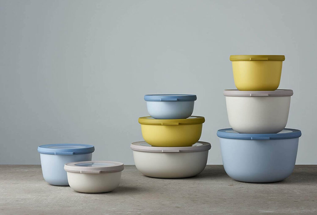 電子レンジ対応のオシャレな保存容器。密閉できる蓋がついていて、そのまま冷蔵庫からレンジにかける事ができます。
